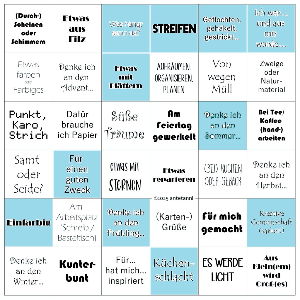 Damit schaue ich noch schnell bei Antetannis Jahresbingo mit dem Thema „Was hängt denn da?“ vorbei. Was für ein passendes Motto!