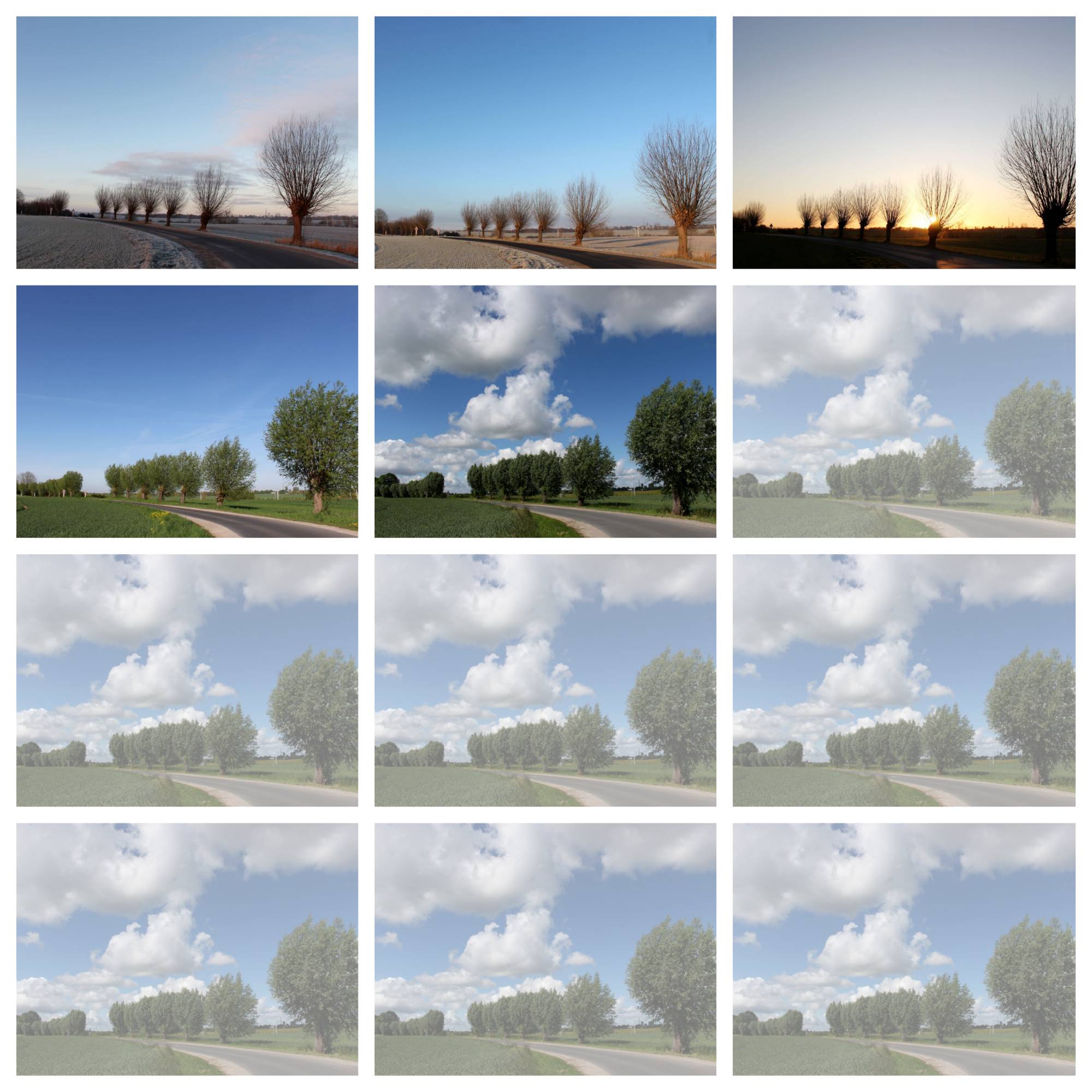 Ein Teil der Aktion ist es, die Bilder in eine Collage zu packen. So sieht man auf einen Blick, was sich verändert hat. Immer wieder spannend! Ich wollte dieses Jahr einen Spot, der viel Veränderung zeigt. Ich denke, mein Vorhaben läuft ganz gut. Bäume und Felder sind dabei ein ganz dankbares Motiv.