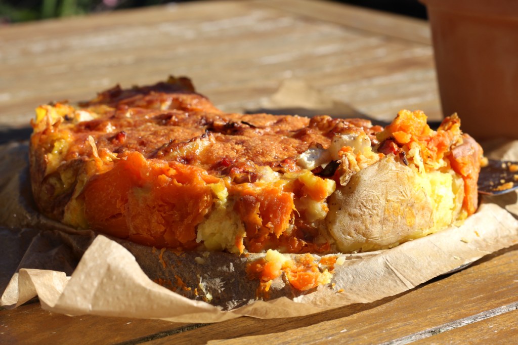 Kartoffel-Süßkartoffel-Quiche mit Gemüsefüllung