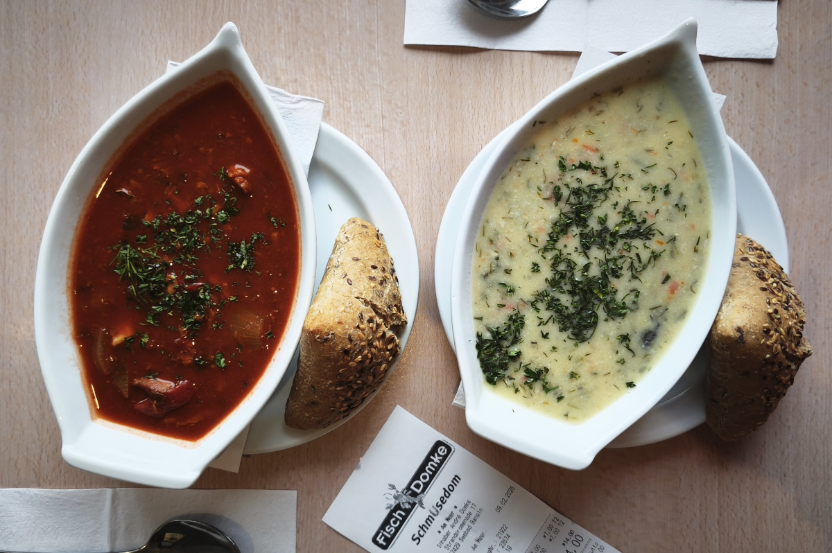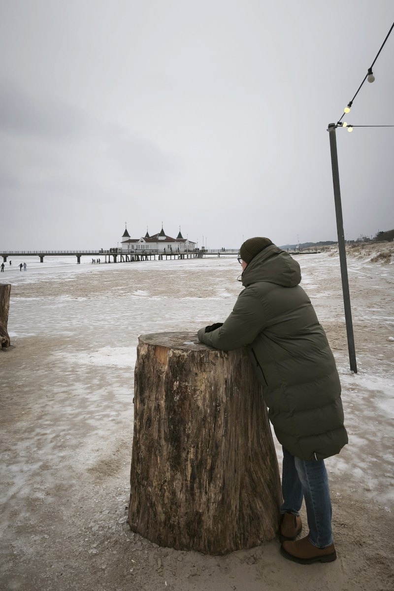 Die Ostsee im Winter hat wirklich ihre ganz eigene Magie. Danach zog es uns in die entgegengesetzte Richtung nach Bansin, denn bei Fisch Domke wollten wir unbedingt wieder einkehren. Die Fischsuppen dort sind einfach legendär. Ich entschied mich für einen Fischtopf mit heller Sauce und Dill – so unglaublich aromatisch und wohltuend. Mein Mann wählte eine kräftige Fischsoljanka. Höchstzufrieden machten wir uns wieder auf den Weg nach Heringsdorf, inklusive kleiner Rutschpartien, und gönnten uns – natürlich – noch einen Kaffee. Urlaub bedeutet schließlich auch am zweiten Tag ein fettes Stück Kuchen. Schließlich brauchten wir Energie bei der Kälte.