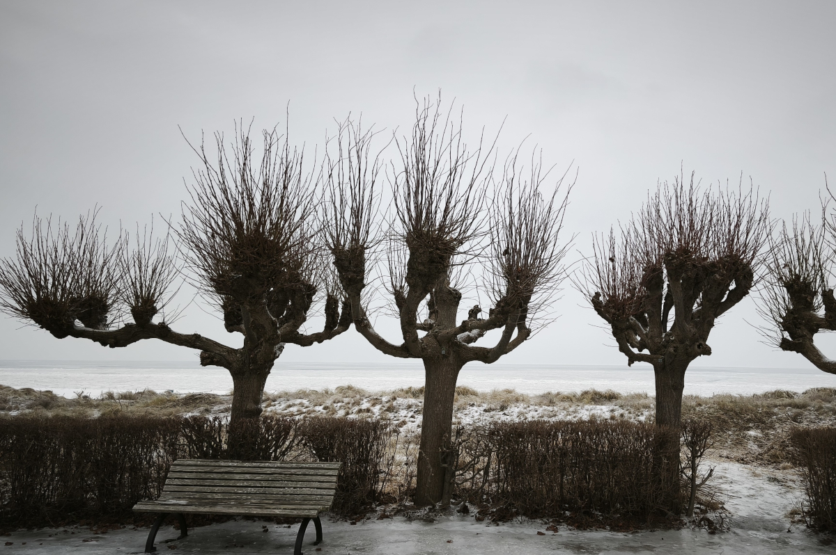 Noch ein paar letzte „schwarz-weiß-beige“ Aufnahmen, übrigens alle ohne Filter und dann waren sie auch schon vorbei, diese drei Wintertage. Mit frischer Ostseeluft in der Lunge, entspannt vom Wellnessbereich und satt von Fischsuppe und Kuchen sind wir wieder nach Hause gefahren. Jetzt überlegen wir schon, was wir als Nächstes im kalten Februar anstellen werden.