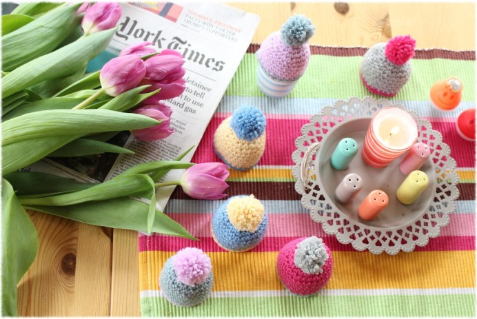 Ich wurde gefragt, ob ich auch ein paar Eierwärmer häkeln könnte. Na, dass war ja wieder mal ein Projekt wie für mich gemacht. Kleinigkeiten häkeln, wo man variieren kann, ein Traum. Da habe ich gleich ein paar Kollektionen gefertigt und freue mich, euch heute die erste zu präsentieren. Hier kommen die Bommelmützen in Frühlingsfarben.